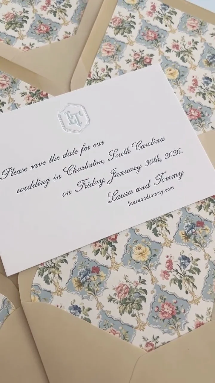 If you know you want to reserve your wedding weekend on our calendar we require advance notice of at least 6 months. We only allow for a few weddings a month so our designers can devote all the time needed to create a truly stunning day-of stationery package.